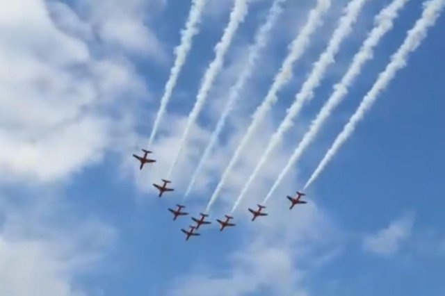 The renowned red jets will fly past with six of their RAF Hawk T1s.